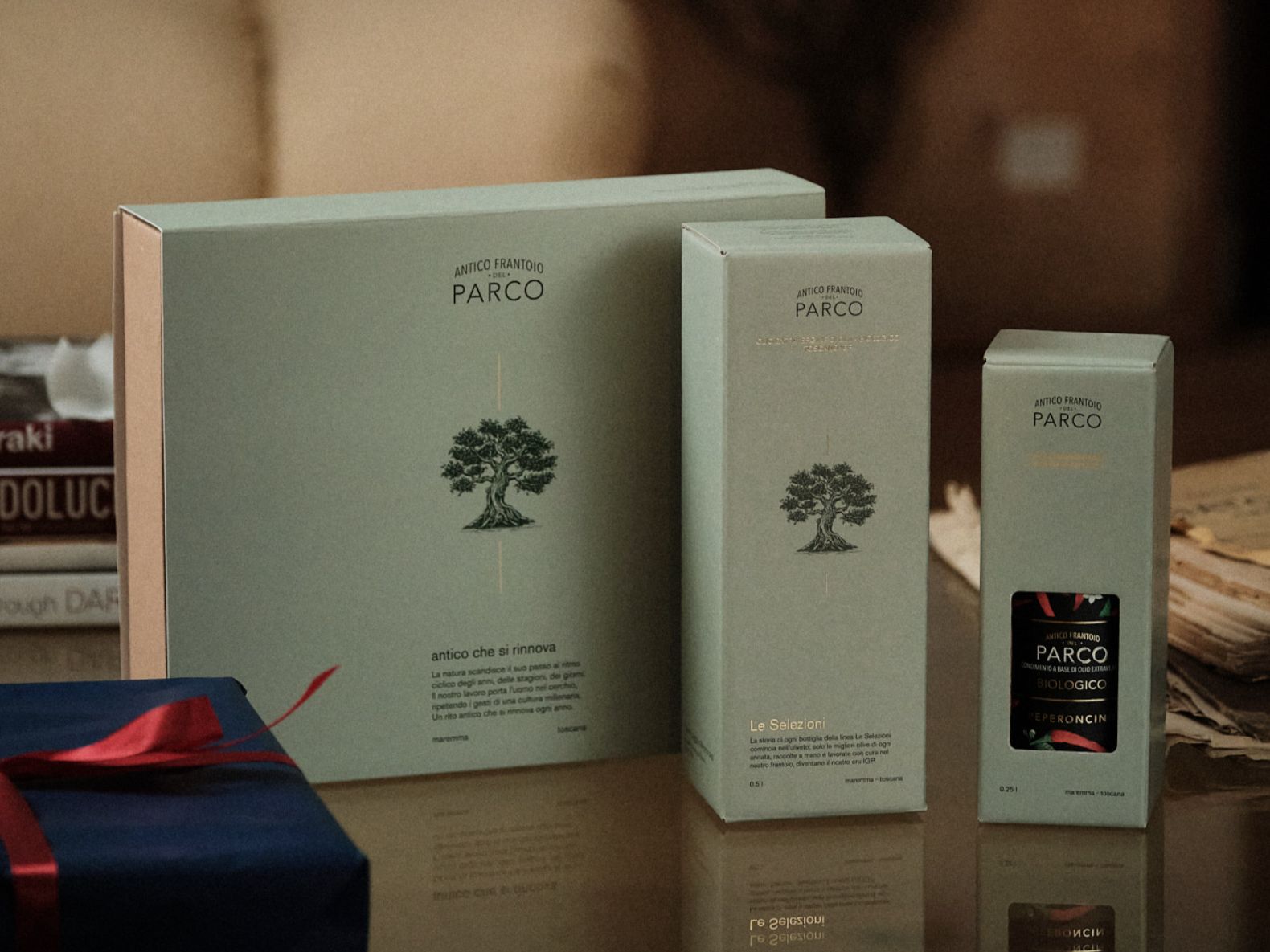 Preziose confezioni che custodiscono il nostro olio EVO Bio e lo rendono una idea regalo esclusiva e sostenibile.